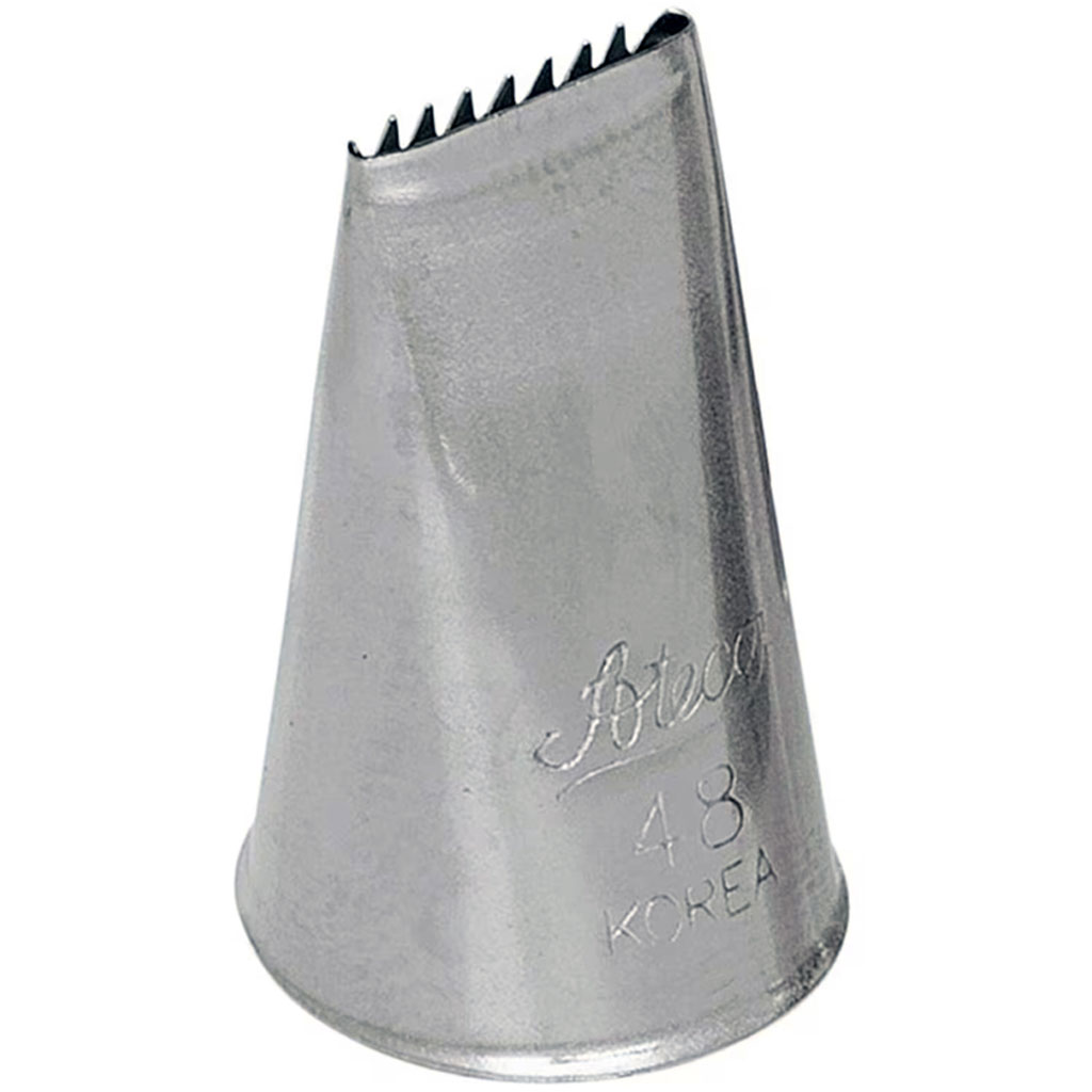 Create beautifully textured cakes with ease using the Ateco #48 Pastry Tip. Designed for precision and durability, this dual‑sided basketweave tip lets you pipe both smooth and ridged icing details—perfect for realistic basketweave designs and decorative borders.