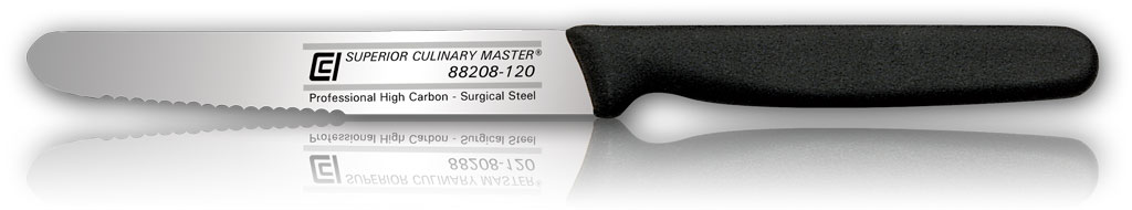 High Quality, European Made, Serrated Knife with an Anti-Slip Handle and Round Tip