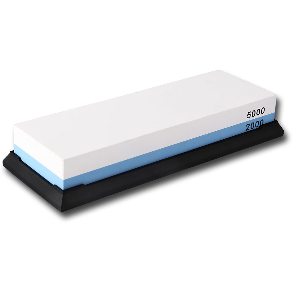 Dual-sided white corundum whetstone with 2000 Grit and 5000 Grit, fixed with an anti-slip silicone base