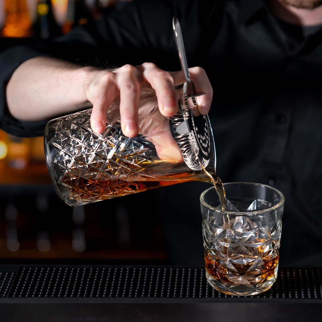 Upgrade your barware with this 24.5 oz glass mixing beaker, designed for smooth, efficient cocktail preparation. The nucleated base enhances carbonation and visual presentation, making it ideal for beer service as well as mixology.