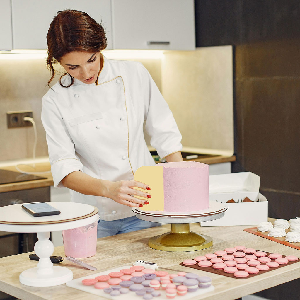 Scrapers are used to lift dough out of the mixing bowl onto a working surface. Dough scrapers can also be used to cut and portion the dough.