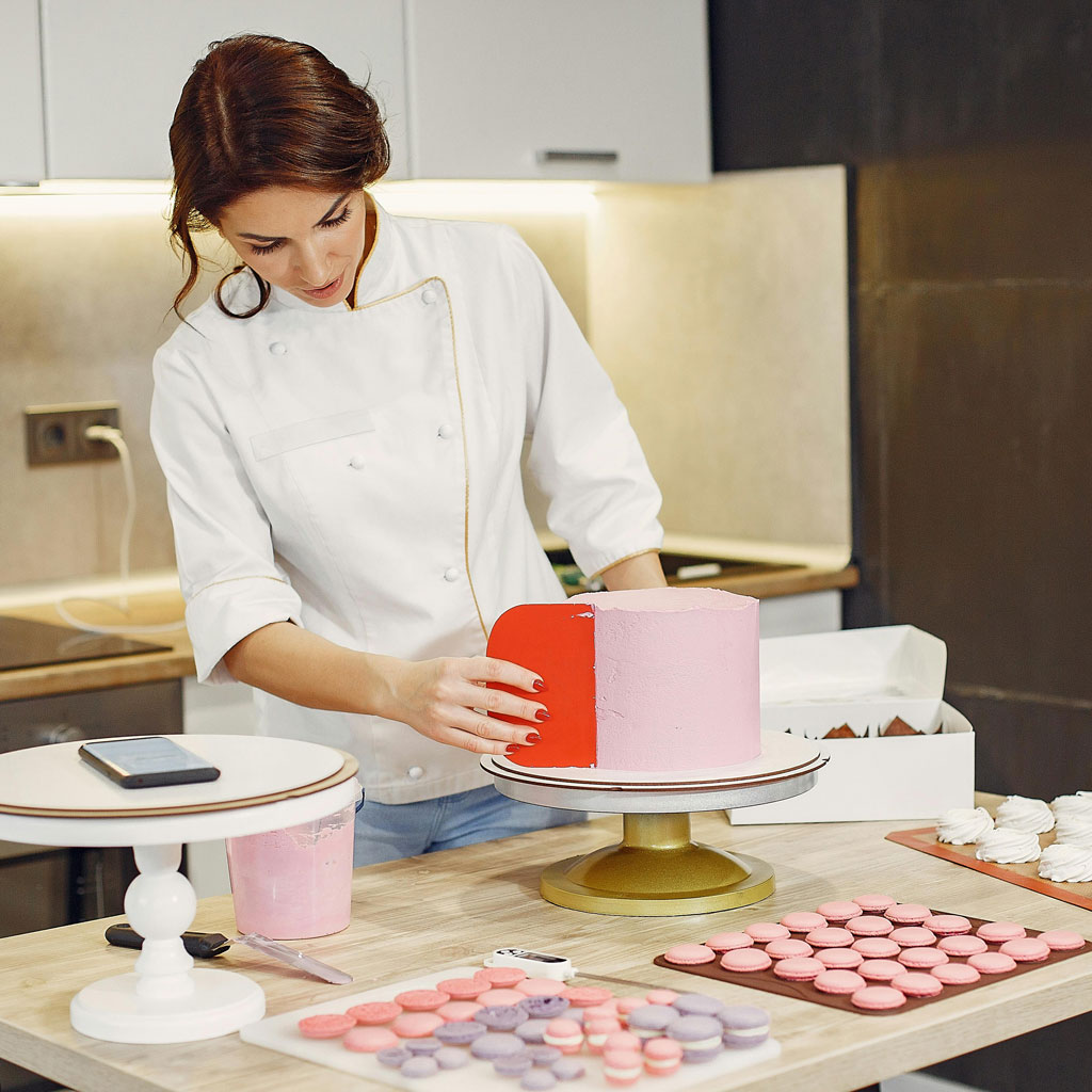 Scrapers are used to lift dough out of the mixing bowl onto a working surface. Dough scrapers can also be used to cut and portion the dough.