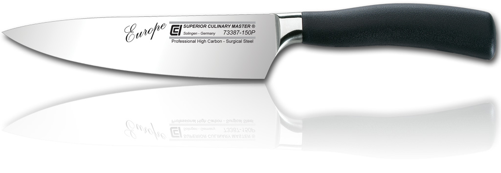 Also known as a French or Cook's knife, the blade is curved to allow a rocking motion during usage to get a more precise cut. This knife is the all purpose, "worker knife" in the kitchen, and is used for a variety of slicing, chopping, dicing and mincing tasks.