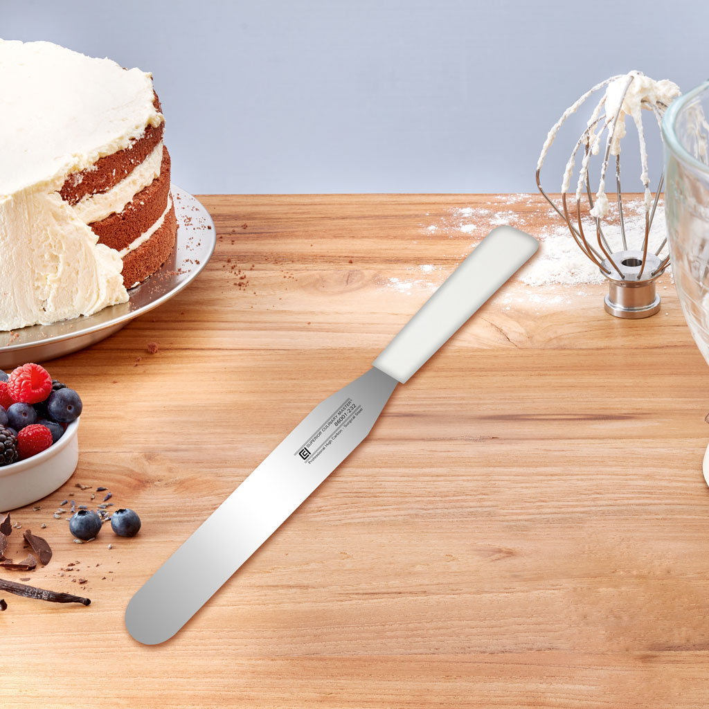 Upgrade your kitchen tools with our 9-inch Spatula/Palette Knife, featuring a rounded, tapered blade tip for smooth, precise spreading. The lightweight nylon handle offers comfort and control—perfect for icing, decorating, and everyday kitchen tasks.