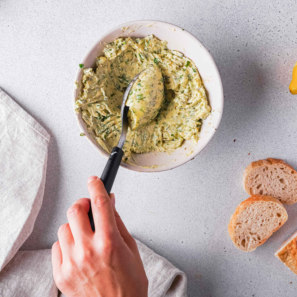 Same sized spoons flush with each other, allowing quenelle to be either pulled with one spoon or formed with two spoons.
