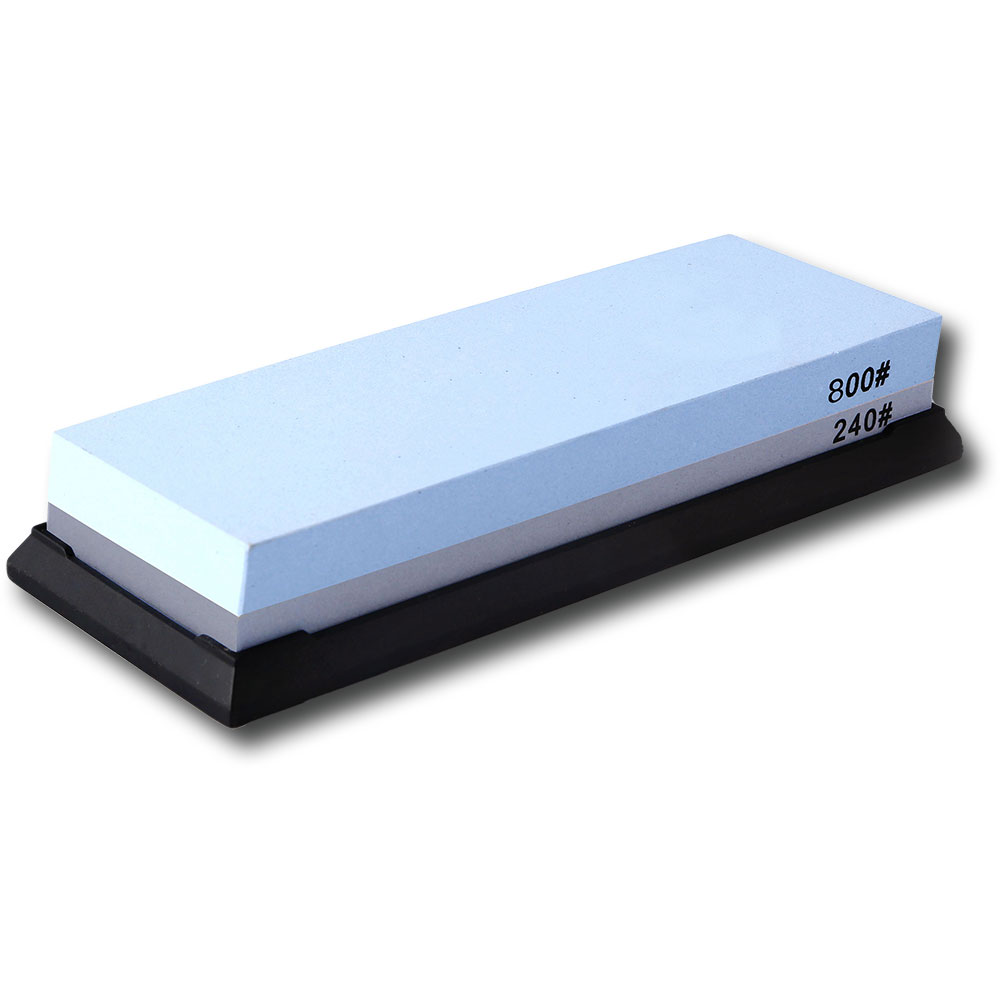 Dual-sided white corundum whetstone with 240 Grit and 800 Grit, fixed with an anti-slip silicone base