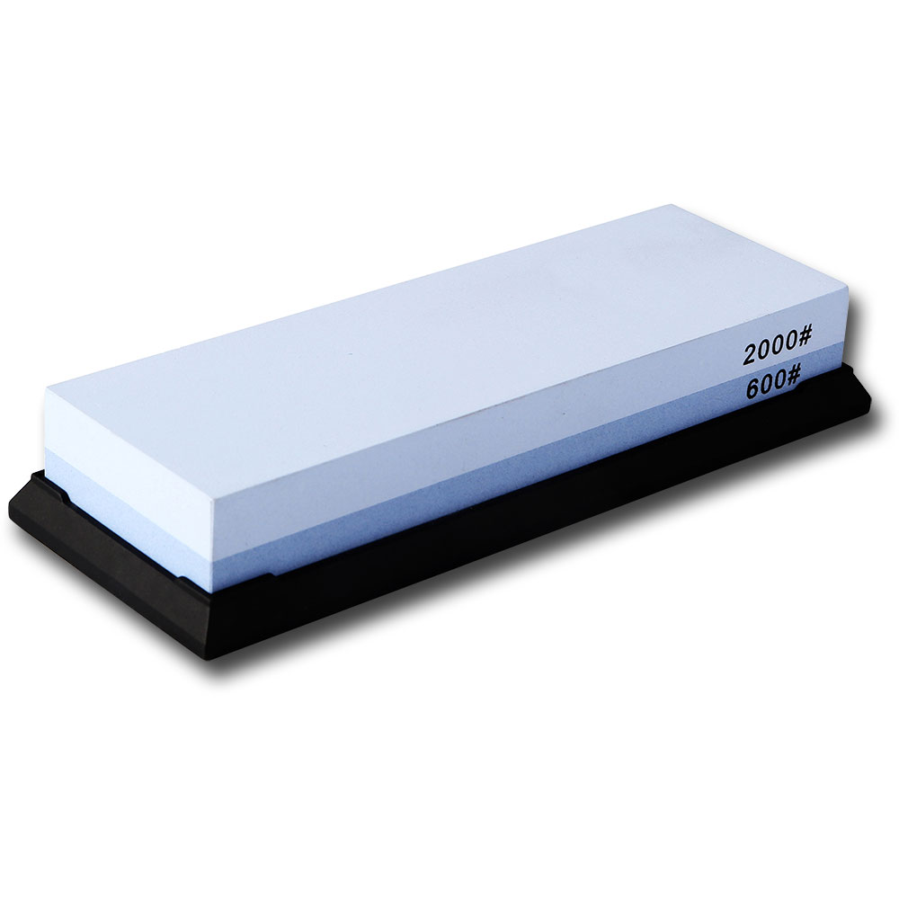 Dual-sided white corundum whetstone with 600 Grit and 2000 Grit, fixed with an anti-slip silicone base